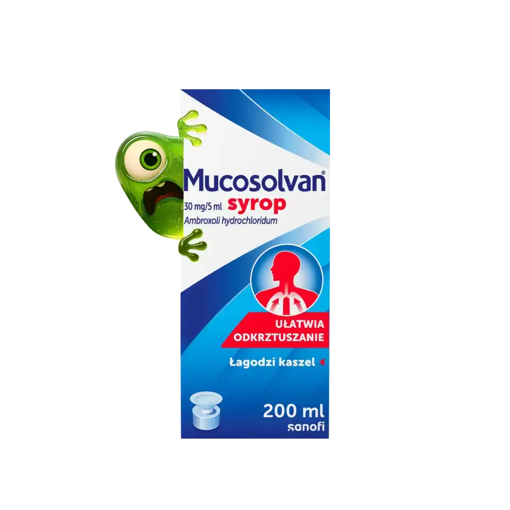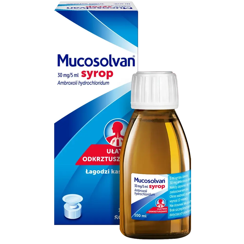 Syrop Mucosolvan® (30 mg/5 ml) to lek bez recepty, który łagodzi mokry, męczący kaszel i ułatwia odkrztuszanie. Mucosolvan® rozrzedza zalegającą wydzielinę, oczyszcza drogi oddechowe i przywraca naturalną ochronę.1